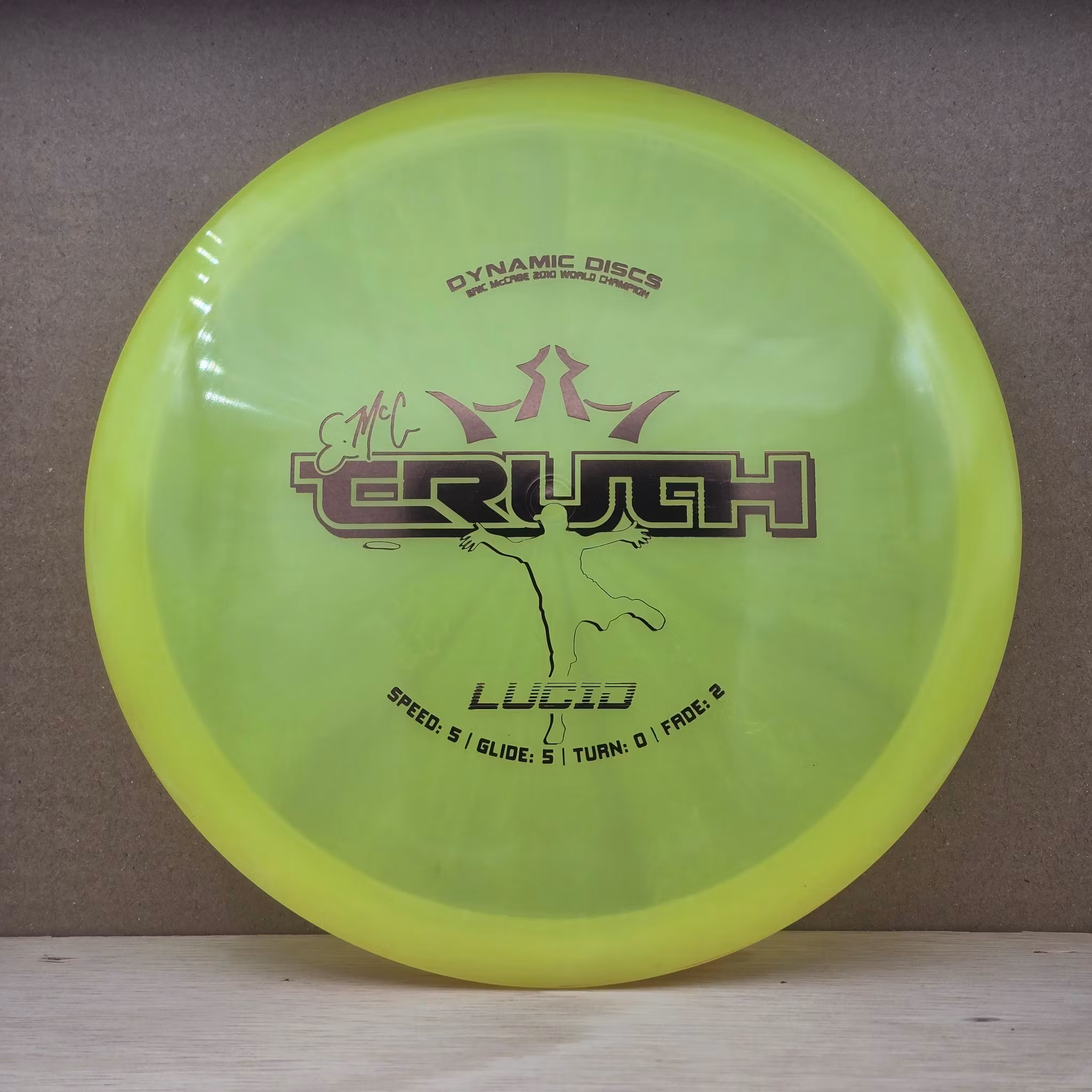 Fuzion EMac Truth - (T) 169 kr Available! Get in the bag! Information Mold: EMac TruthPlastic: FuzionBrand: Dynamic DiscsSpeed: 5 / Glide: 5 / Turn: 0 / Fade: 2Contition: Tested (T) – Thrown a few times, very little wearWeight: Marked 178gInk: Name and number inside rimComment from us:-
