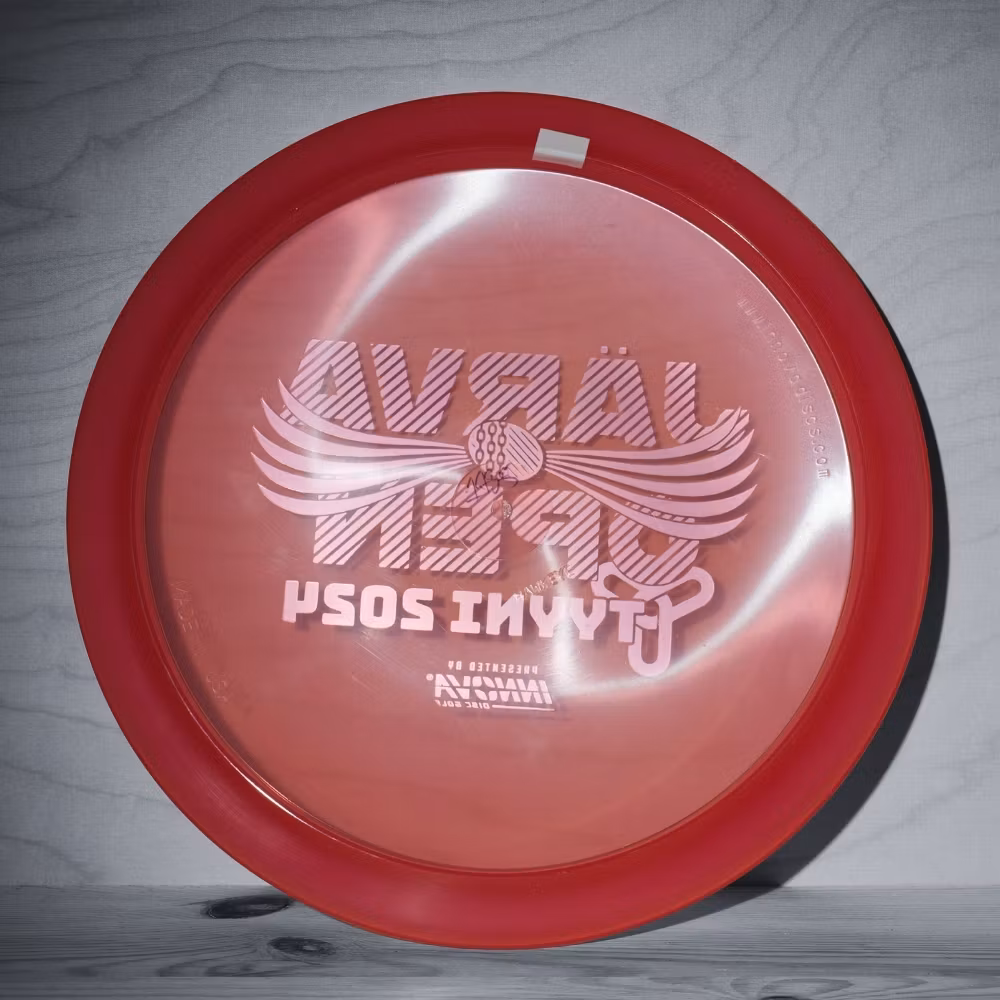 Champion Hawkeye - (N) 169 kr Out of stock... Information Mold: HawkeyePlastic: ChampionBrand: InnovaSpeed: 7 / Glide: 5 / Turn: -1 / Fade: 1Contition: New (N) – Never thrown but may have storage wearWeight: Marked 173-5gInk: No personal inkComment from us:Feels like a old Innova-made Discmania FD...