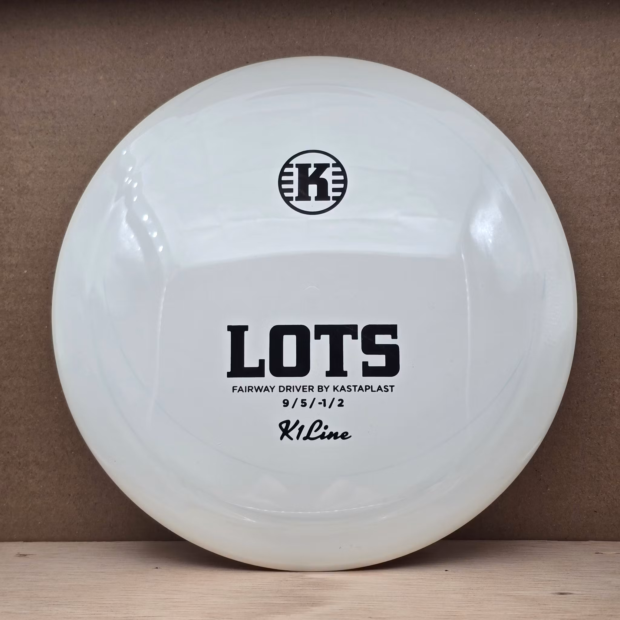 K1 Lots - (T) 189 kr Available! Get in the bag! Information Mold: LotsPlastic: K1Brand: KastaplastSpeed: 9 / Glide: 5 / Turn: -1 / Fade: 2Contition: Tested (T) – Thrown a few times, very little wearWeight: Marked 174gInk: No personal inkComment from us:We love a straight 9-speed with glide. Distance and control!
