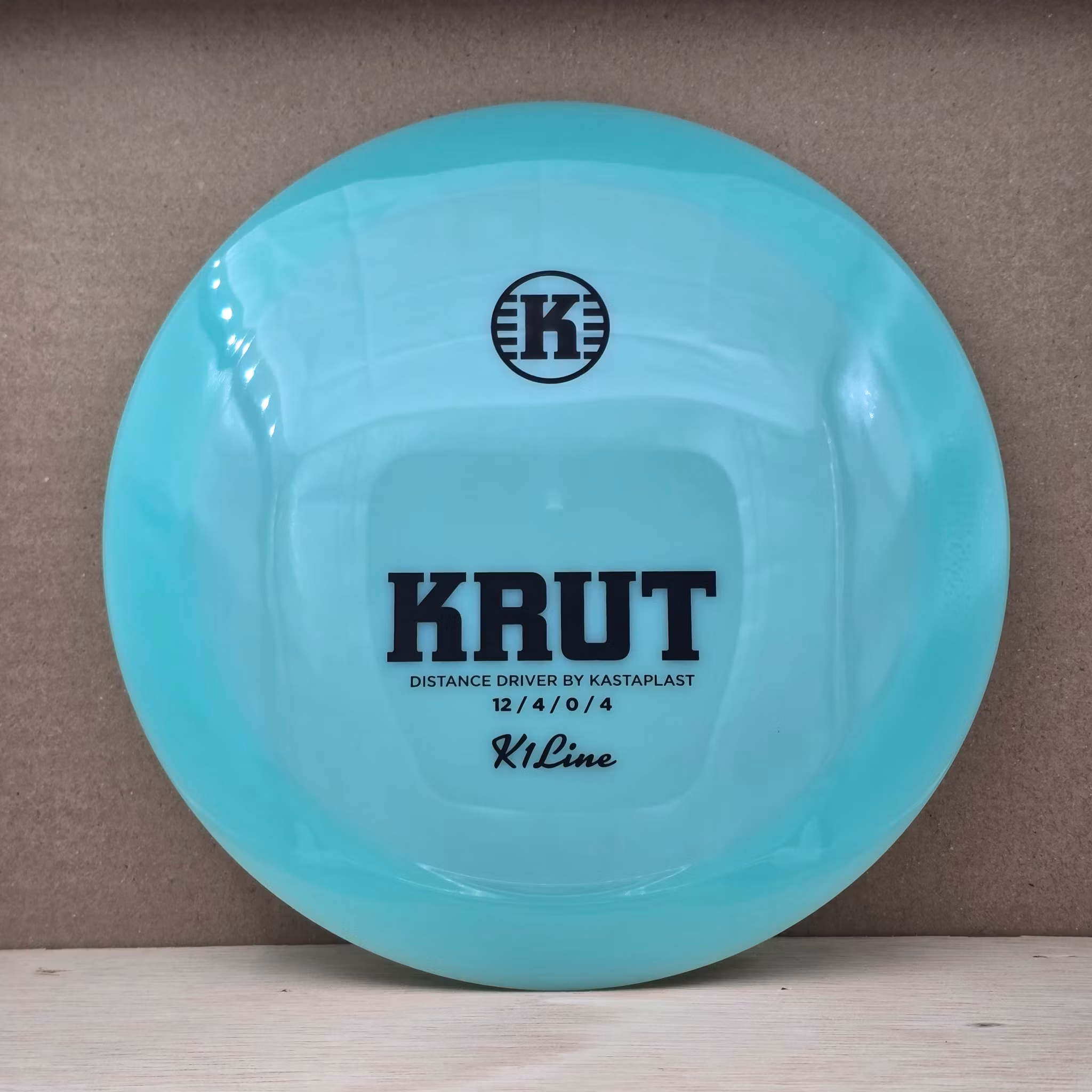 K1 First Run Krut - (N) 449 kr Available! Get in the bag! Information Mold: KrutPlastic: K1Brand: KastaplastSpeed: 12 / Glide: 4 / Turn: 0 / Fade: 4Contition: New (N) – Never thrown but may have storage wearWeight: Marked 173gInk: No personal inkComment from us:The First Run Kastaplast Mint is something special!