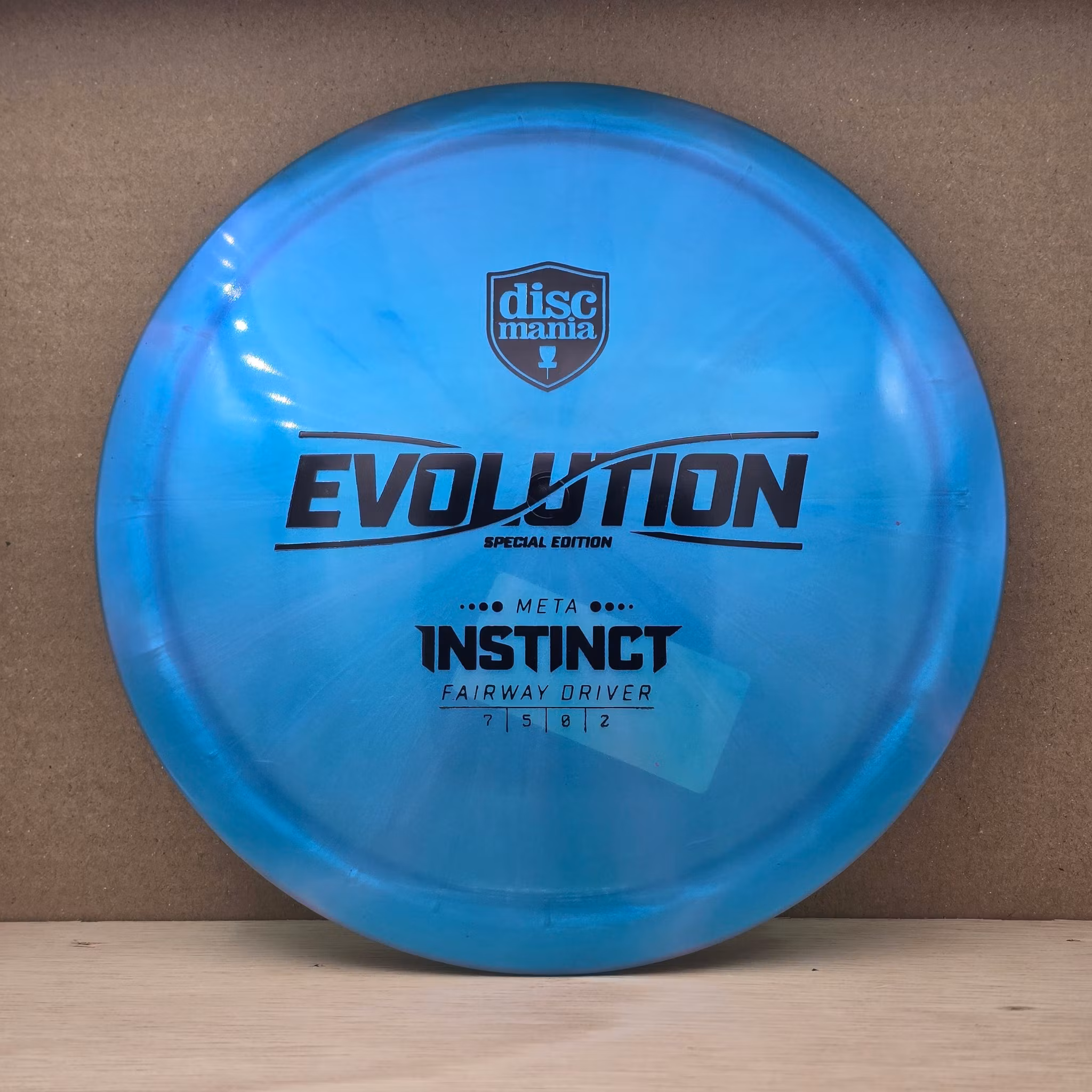 Meta Instinct Special Edition - (N) 229 kr Available! Get in the bag! Information Mold: InstinctPlastic: MetaBrand: DiscmaniaSpeed: 7 / Glide: 5 / Turn: 0 / Fade: 2Contition: New (N) – Never thrown but may have storage wearWeight: Marked 173gInk: No personal inkComment from us:Straight stable 7-speed suits all bags!