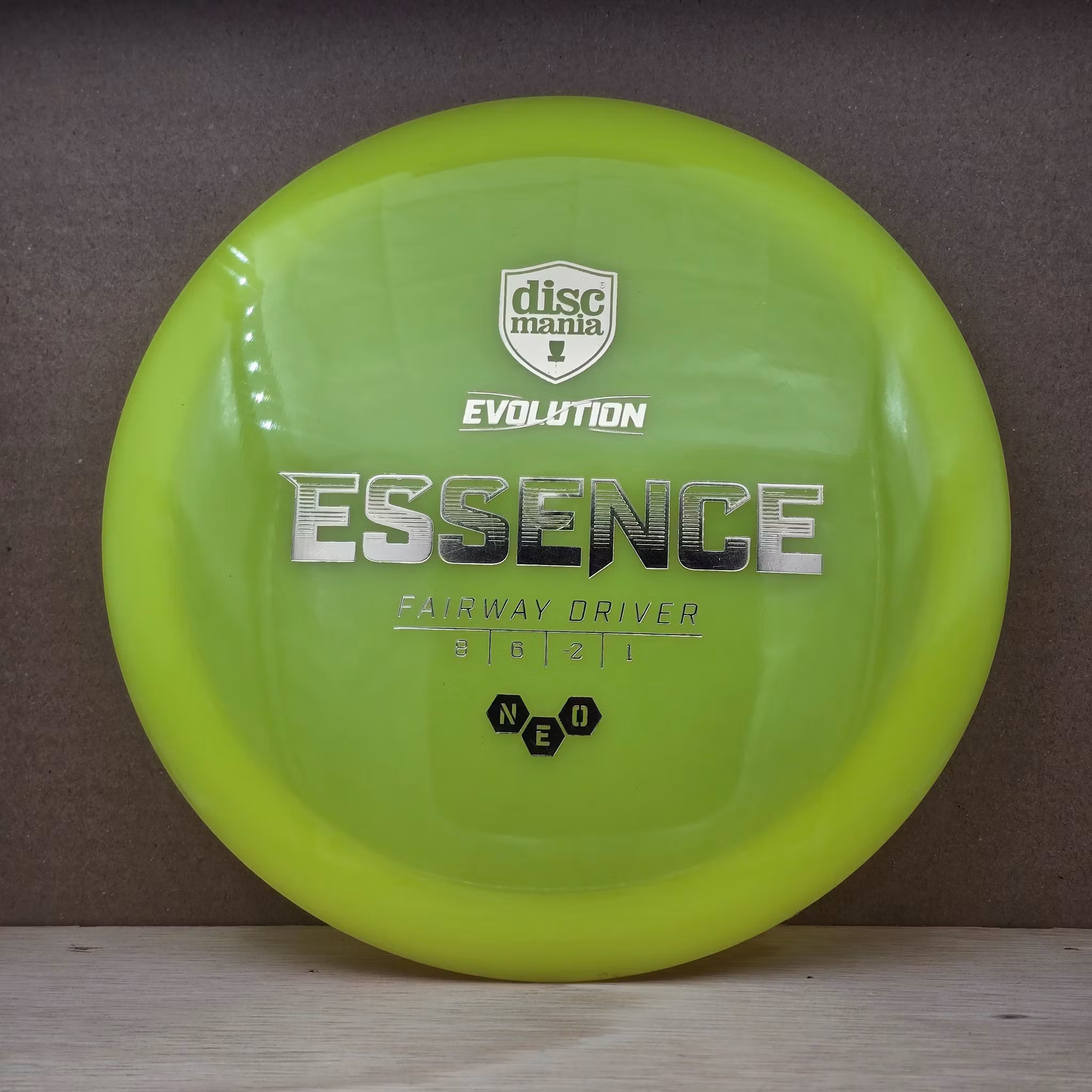 Neo Essence - (T) 179 kr Available! Get in the bag! Information Mold: EssencePlastic: NeoBrand: DiscmaniaSpeed: 8 / Glide: 6 / Turn: -2 / Fade: 1Contition: Tested (T) – Thrown a few times, very little wearWeight: Marked 174gInk: No personal inkComment from us:A perfect longer fairway for the woods or if you need easy distance!
